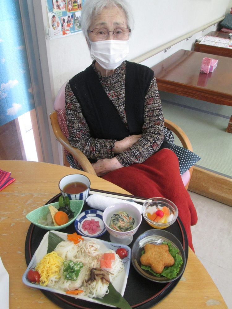昼食は、七夕そうめんなど何とも色鮮やかで可愛らしいお膳でした✨