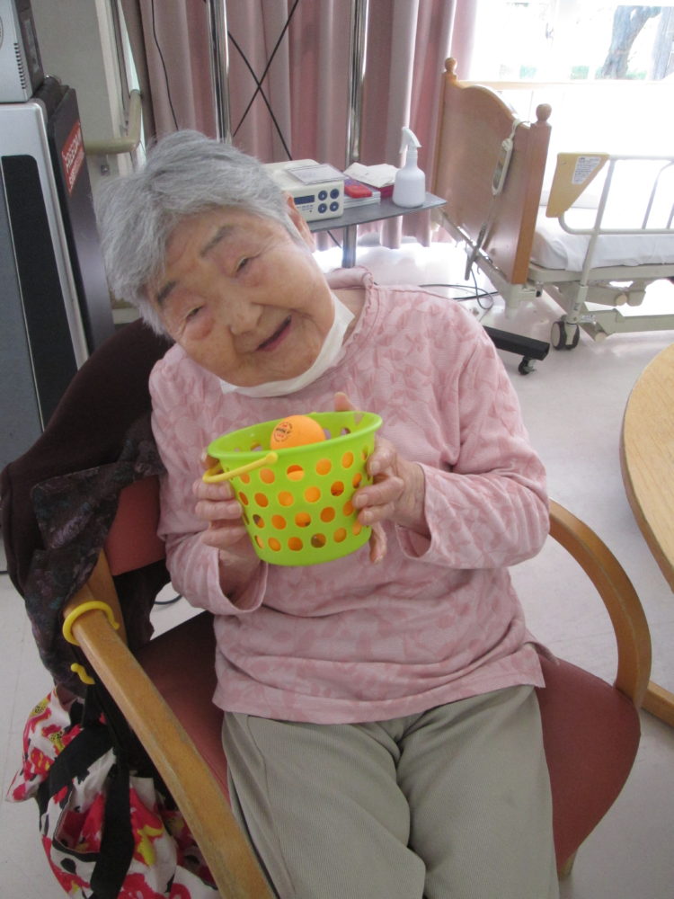 ピンポン玉が跳ねるリズムに合わせて「はいっはいっ」と声を合わせ、