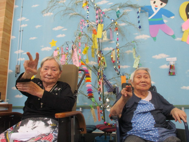 七夕にはお客様のや職員のお願い事を飾り付けています。