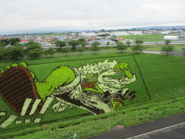ブログをご覧の皆様、こんにちは。蒸し暑い日が続いています。ご自愛ください。さて先日現在見頃の田舎館田んぼアートに行ってきました。当日は雨模様でしたが、展望台から見事なアートを見る事ができました。歴史上の人物、アニメヒーローは正に傑作でした。「なんぼ綺麗だ」「見事だな」等感動されておりました。帰りは道の駅に立ち寄り、ウキウキ買い物タイムです。皆様、真剣に品定めしておりました。「全部美味しそうで迷うね」と終始眼を輝けせておりました。とても楽しい思い出となりました。