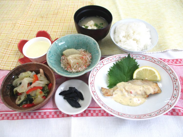 ふろふき大根かにあんかけ、なす漬、和梨ゼリー
