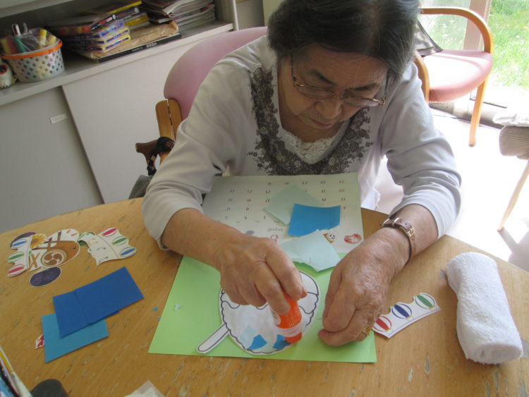 午後からは、工作レクを行いました✂8月のカレンダー作りです😊