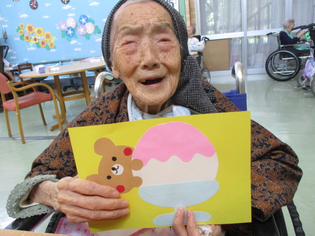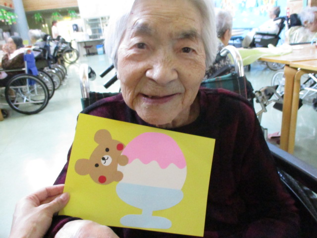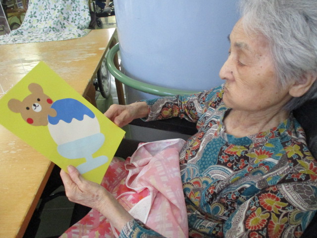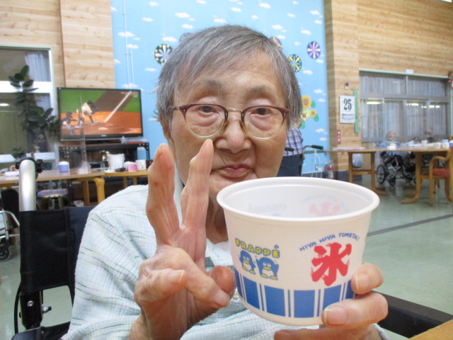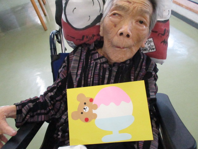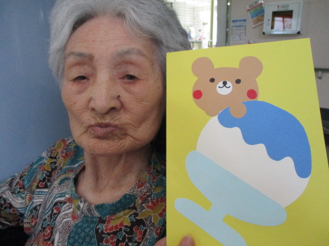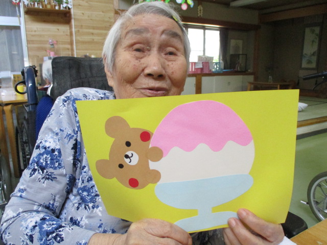 こちらは職員が作ったかき氷です♪お二方ともかき氷よりもクマさんがかわいいねぇ~と話されておりました💦