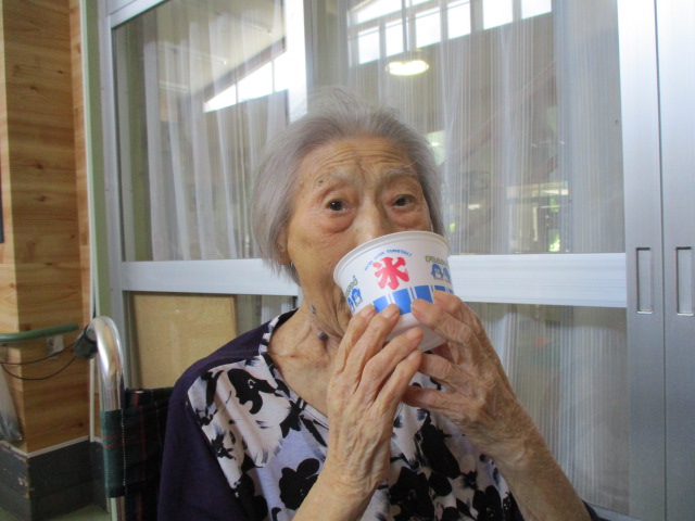 カップが冷たくて気持ちいね~とはなされるY様🍧小さい氷を1つだけ口にふくみさっぱりしました!!