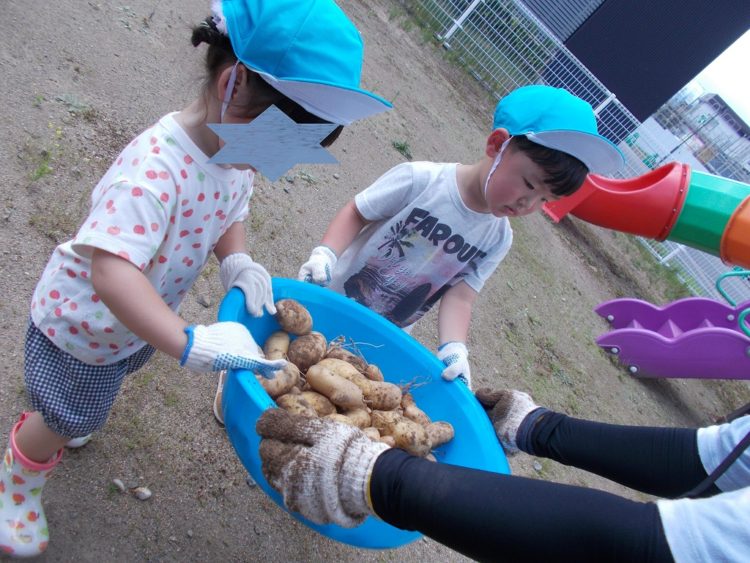 昨日、春に子ども達と一緒に植えたじゃがいもを収穫しました^^