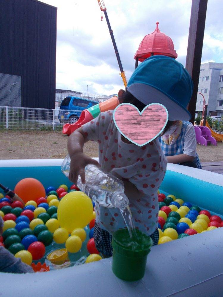 水をバシャバシャと自分にかけたり、ボールを水面にはずませたり、とってもはしゃいでいた子ども達でした♪
