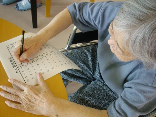 「計算やりませんか?」と話すと「もう頭わるくなっちゃったから~」と話しながらもちらっとプリントを見ると