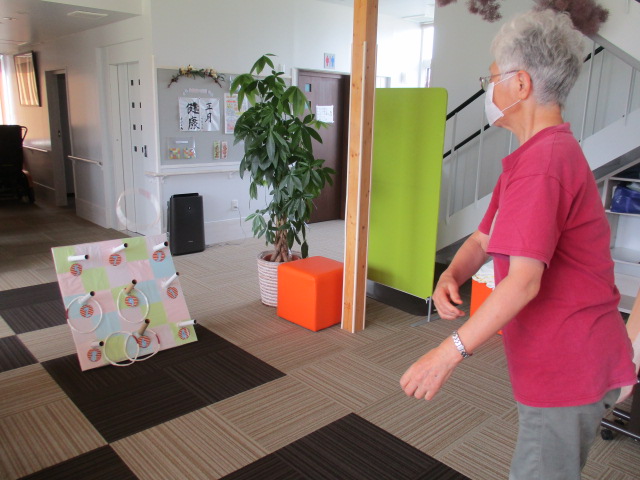 ブログをご覧の皆様いかがお過ごしですか。 本日は午後の余暇の時間にラジオ体操で体をほぐしてから 久しぶりに輪投げお楽しみました。 A様は「手作りなの?...