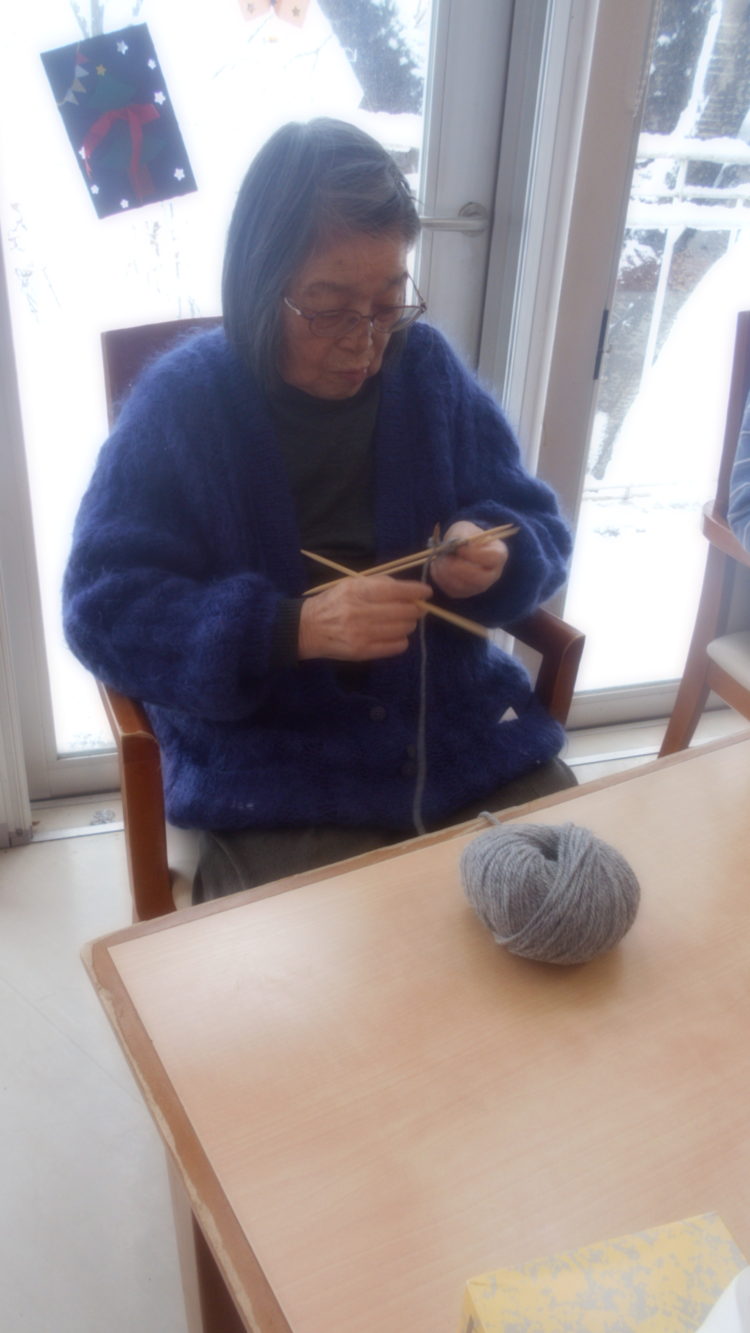 と話され、ひょいひょいと編み針を操られていらっしゃいます...