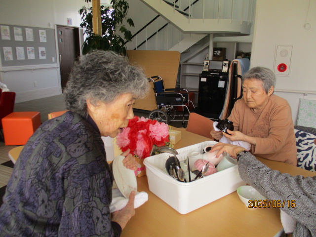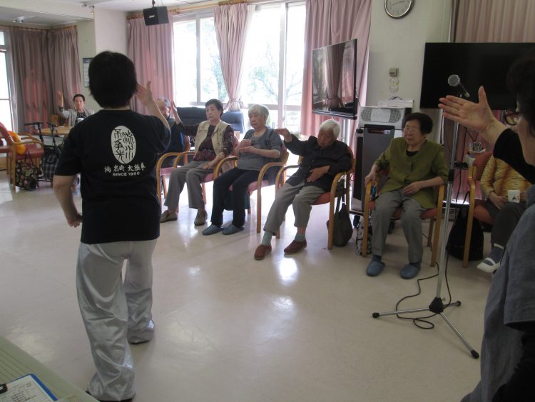本日もお客様皆様はお元気に、歌に合わせて肩こり体操や、認知症と脳梗塞予防...