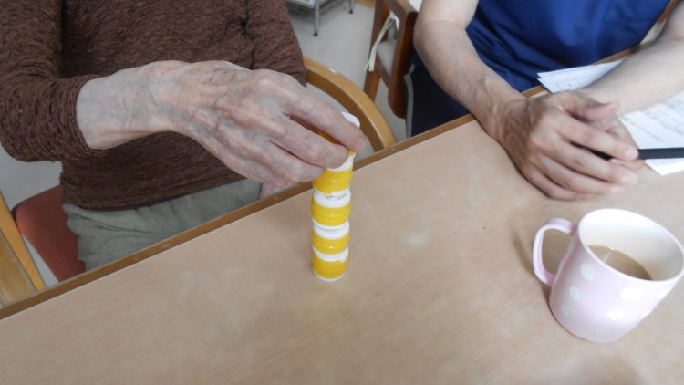 ペットボトルのキャップを積み上げて...