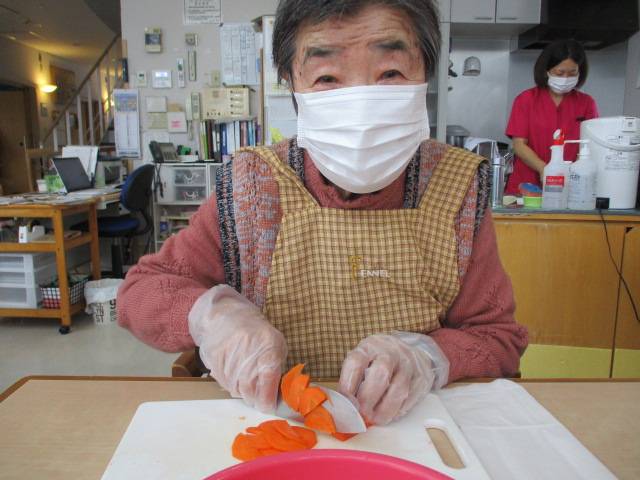 今日の弘前は薄曇り時々雨のスッキリしないお天気でしたが、ベルフラワーでは和やかに調理活動を行いました。