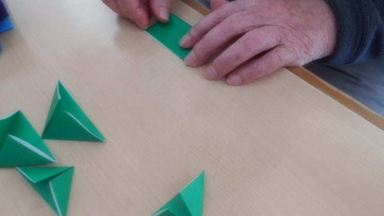 職員の切り絵による、クリスマスポスターが完成したので、パネルに入れて飾りました。