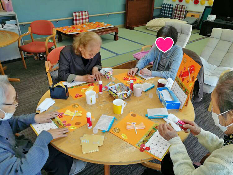 本日は午後から工作レク、10月のカレンダー作りを行いました。
