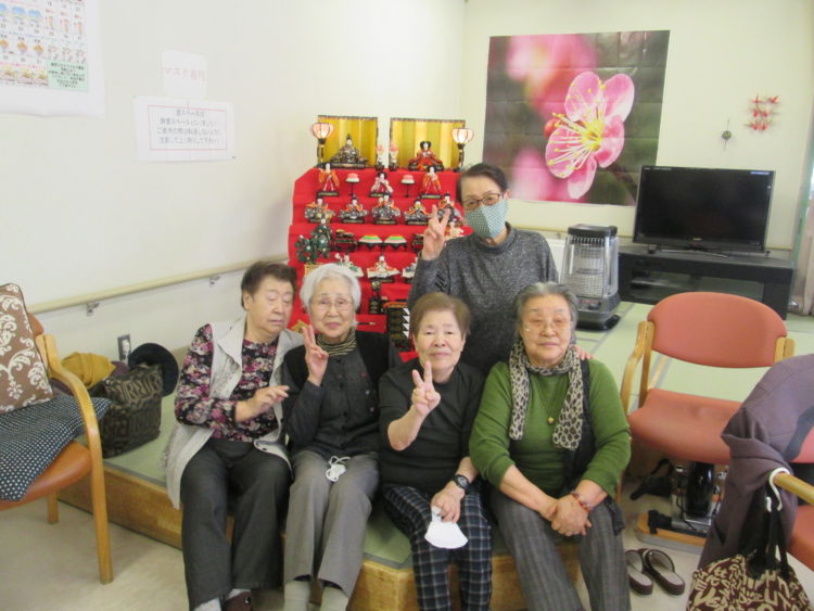お雛祭りの行事2日目、ひな壇の前で記念撮影です(^^♪