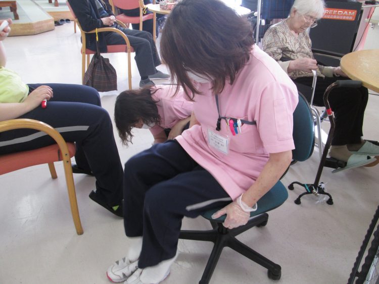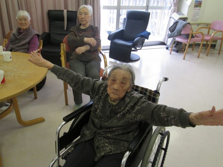 午後のレク活動の前に、体を軽く動かしましょう!