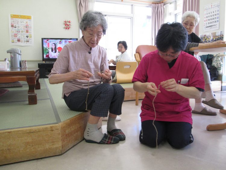 今日の午後の行事は初の試みの「ひも結び」でした。