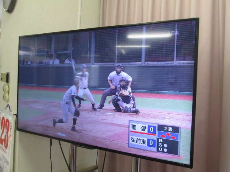 体操前に聖愛高校と東高校の野球の試合を皆様応援中…