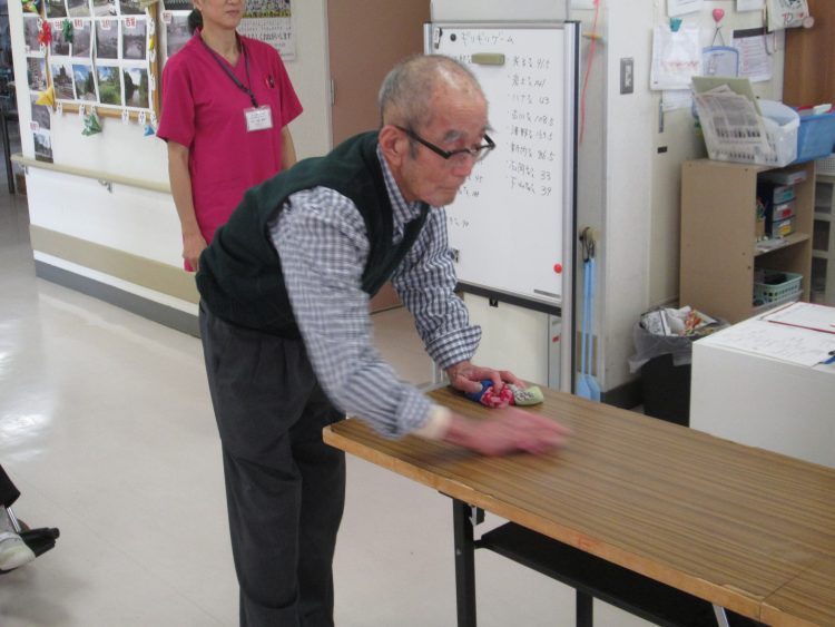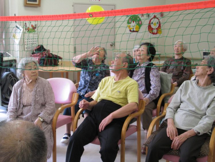 風船バレーが得意なKさん。「それ、それ」気合が入ってます。こちらも負けじと「それ、...