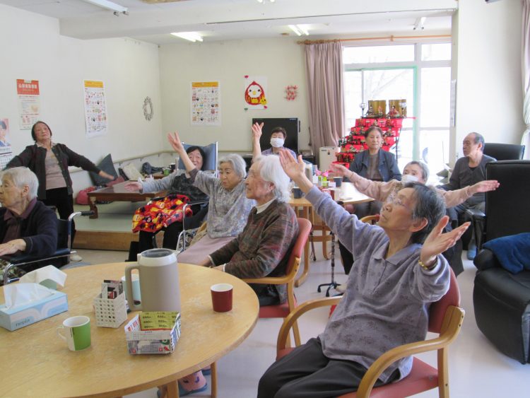 こぶしが利いて、歌がうまい!次回もよろしく。。みんなでスイートポテトをほおばってます。「おいし」の声。笑顔満載。「とてもおいしい」