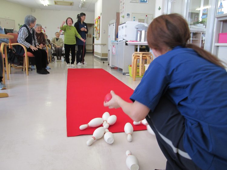 狙いを定めて、定めて。「それ~」軽々と「ほい!」バウンドが低いほどカゴに入るのかしら?50点入った。「ヤッター」次は何点入るかしら?次回にこうご期待。