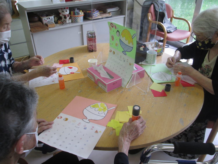 午後からは昨日に引き続き、8月のカレンダー作りを行いました!