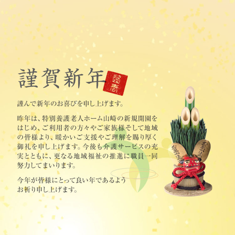 昨年は、特別養護老人ホーム山崎の新規開園をはじめ、ご利用者の方々やご家族様そして地域の皆様より、暖かいご支援やご理解を...