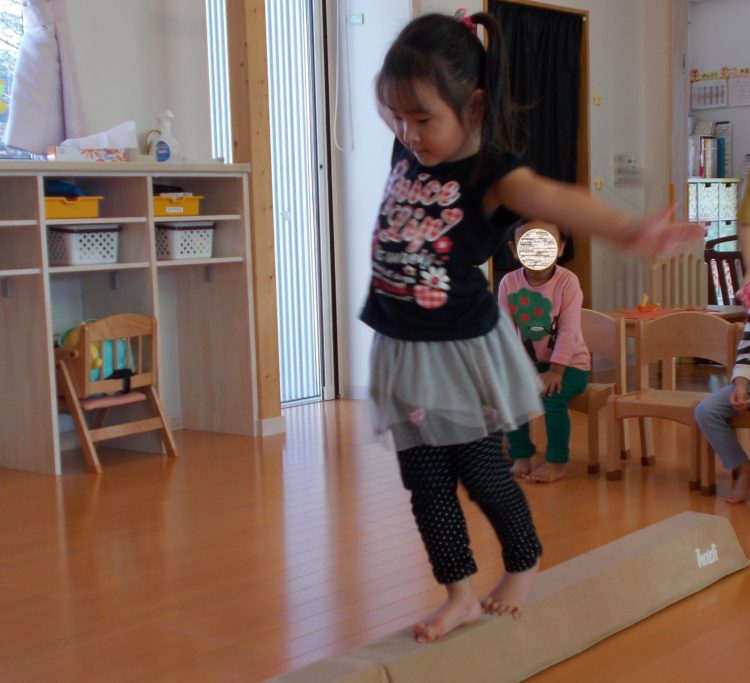 両手をいっぱいに広げ、バランスをとりながら 慎重に平均台を渡っている0ちゃん! 上手に渡りきると、とっても嬉しそうな笑顔を見せてくれました。 ... 詳しく見る