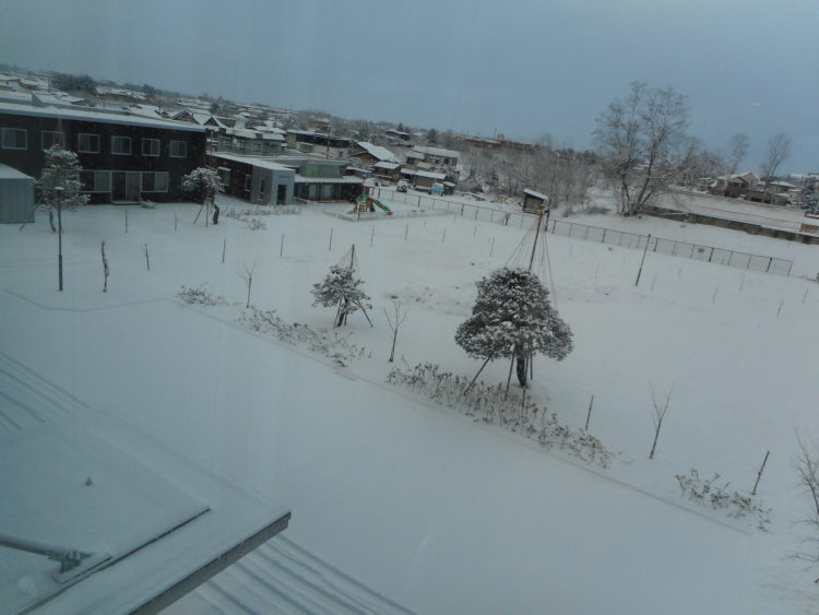 園庭の大型遊具も、また綿帽子をかぶってしまいました!