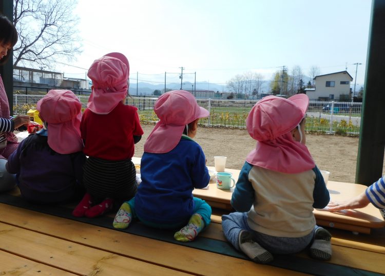 朝からとってもいい天気!!ぽかぽか陽気に誘われて、今日はテラスに出ておやつを食べました♪