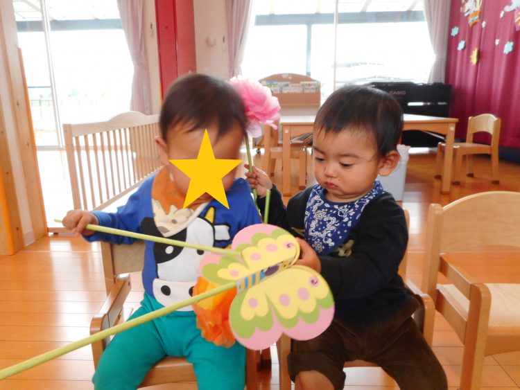 絵の具を付けたスポンジを、画用紙にポンポンとスタンピング(≧∀≦)