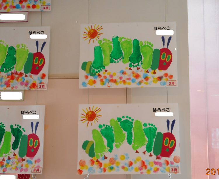 先日、製作活動で緑色の足型を取ったり、