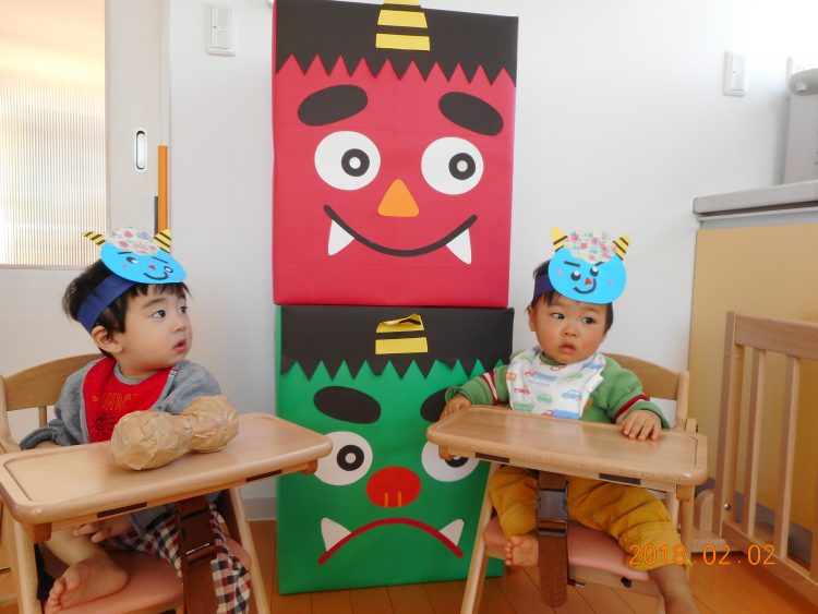 保育園では、昨日節分集会を行い、