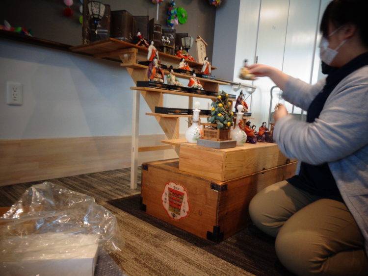 本日は1階にて雛人形の組立を行っておりました。