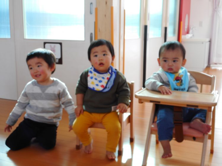 お行儀よくお座りして、保育士が読む大型絵本を見ました!!