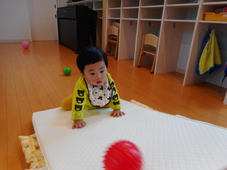 マットレスで坂を作り、ハイハイで上ったり、下りたり!!のはずが・・・。