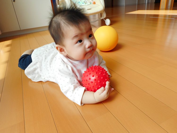 ボールをにぎにぎしたり、転がる方向を目...