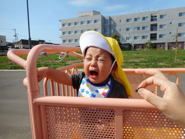 「うぇ~ん、うぇ~ん!」トンボを間近に見て、号泣のTちゃん!