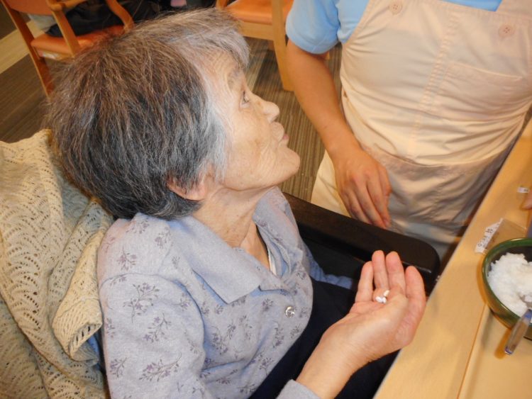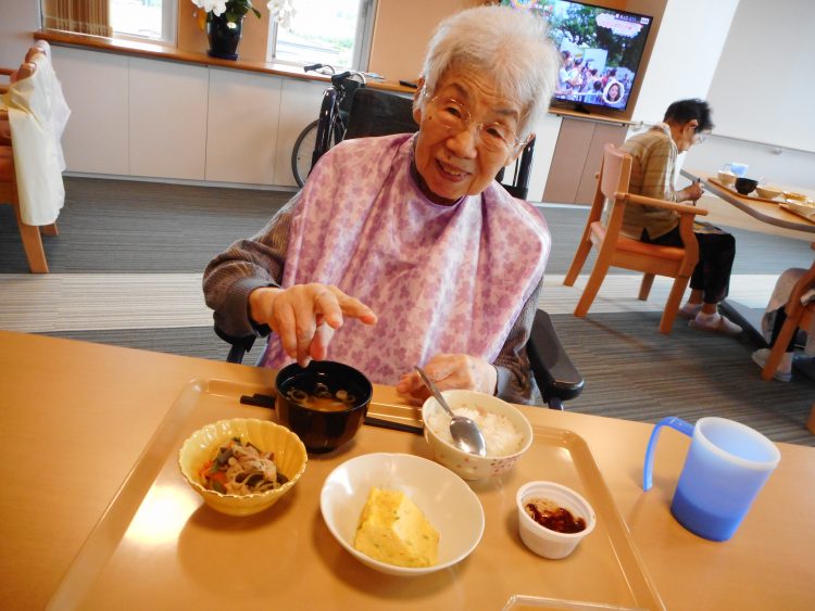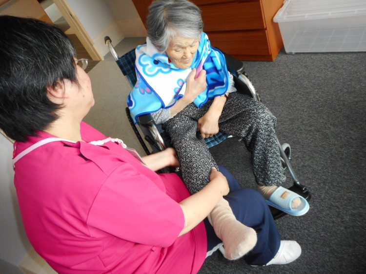 I様は清拭布を畳む作業を率先して、お手伝いしてくださいました。