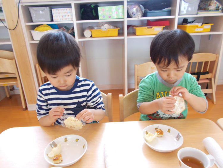 昨日、山崎保育園ではぽかぽか陽気の中園庭でアイス屋さんごっこをしました。