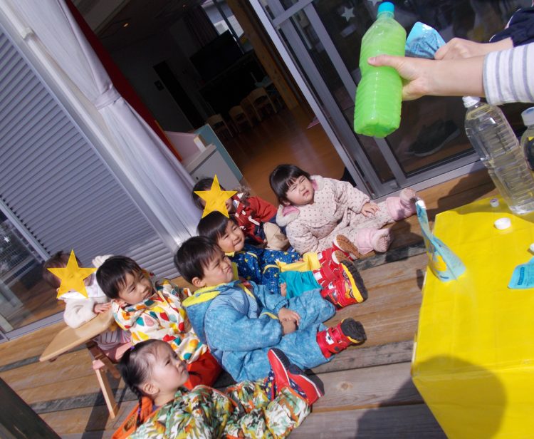 シロップ作り(色水作り)に興味津々の子ども達…