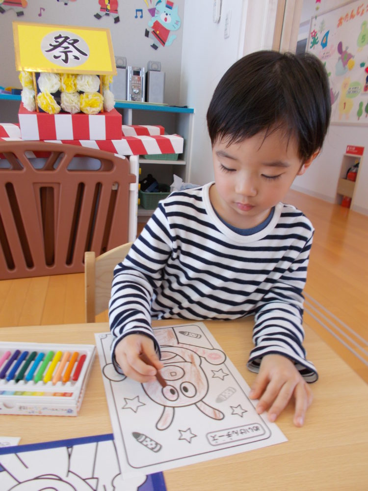 それぞれ好きな色を持ち、色をぬりぬり・・・