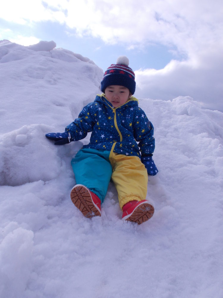 雪のすべりだいを何度もすべったりゆき山を登ったり・・・♪