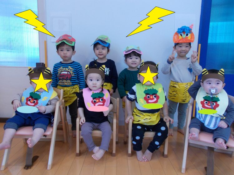 うさぎ組の子ども達は赤鬼やみどり鬼...