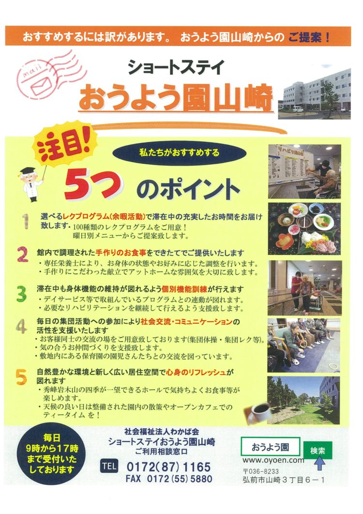 「ショートステイおうよう園山崎」をおすすめする訳は?
