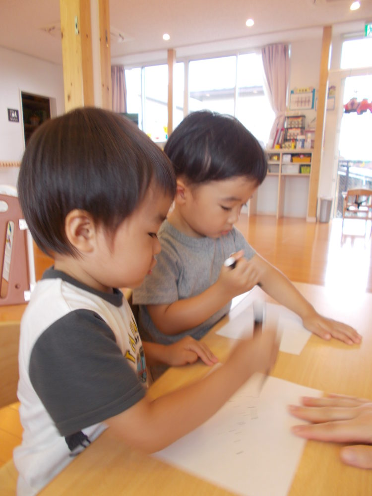 紙に水性ペンでポツポツを書いたり、