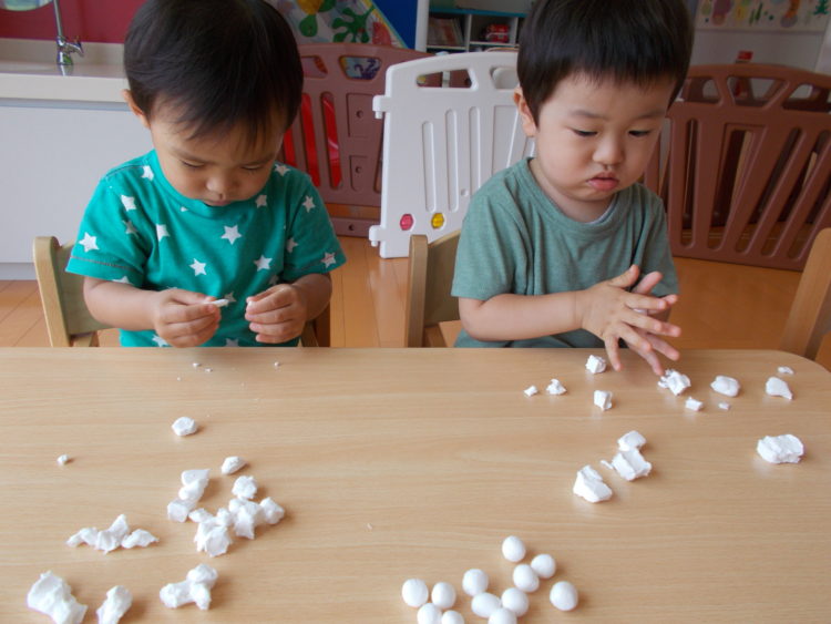 チラシ紙をクシャクシャしたり、