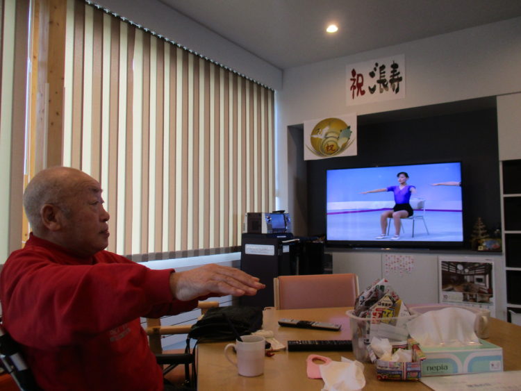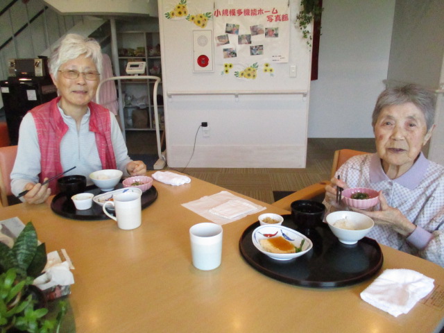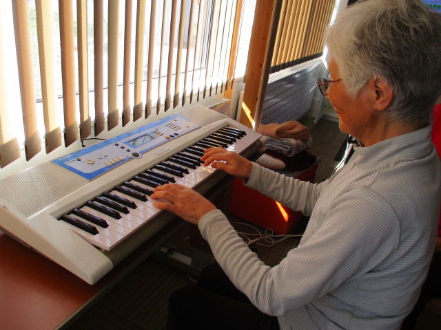 入浴後、ホールにてA様がピアノを弾き、M様が歌を...