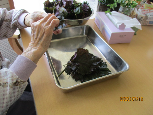 本日はN様とA様に赤しその分ける作業を行いました。