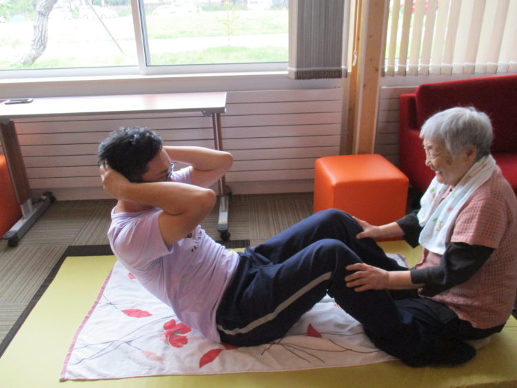 ブログをご覧の皆様、こんにちは!^0^!今日の小規模では職員と一緒に座りながらでの体操を行いました。